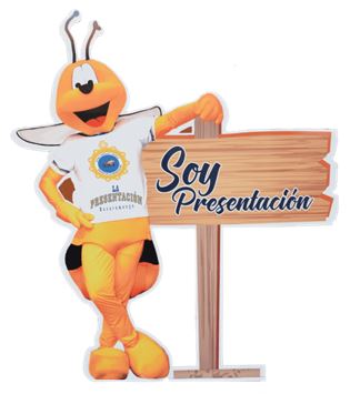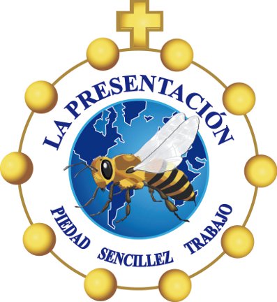 El escudo del colegio de la Presentación, consta de un sello con fondo azul. Esculpida en él una pequeña abeja dorada, enmarcada en una decena del santo rosario. El fondo azul simboliza para los estudiantes de la Presentación, la armonía de la sencillez de su vida. La pequeña abeja dorada es el símbolo del trabajo constante y discreto, constructor y de hondo sentido social.